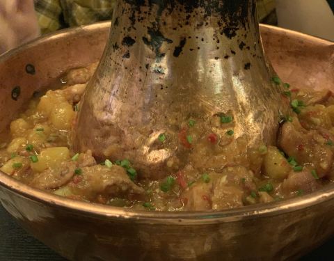 - 我们店了鸡的,里面鸡肉非常嫩,土豆粉粉的,非常入味,不知道锅底下面是否有加热,反正吃饭最后还是热的
