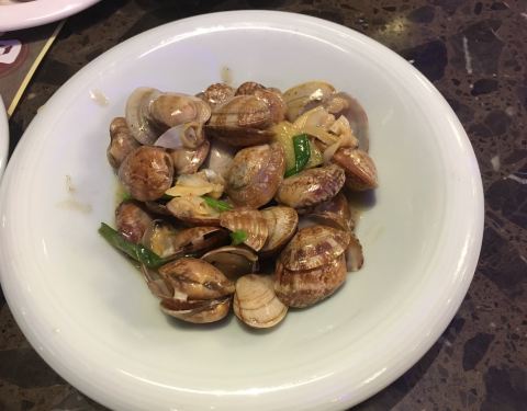 日月光有蛮多茶餐厅的,这家开得比较晚。工作日晚上前去体验。注册会员会送一份冰淇林。那天正好有特价菜,花蛤38、黄蚬48,于是各点一份,又点了乳鸽和查厘士炒饭。菜量普遍比较少,尤其是特价菜。乳鸽45比较油...