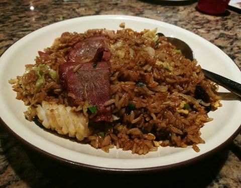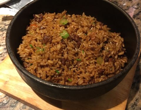 在徐汇日月光转车,想找地方坐坐顺便解决午餐。找到二楼老吉士酒家。店堂民国时期江南堂屋的韵味,有古意无旧感。大妈、小妹服务员接待时亲切、热心。至于味道,属于简餐一类不好不坏,吃饱一类。 澳门炒饭:选择米饭有韧性,酱汁均匀包裹,收汁不错,避免了茶餐厅常常会出现的又油又渗水的,完全是炒出来的。败笔是里面加了五、六大块老而咸的叉烧。 港式奶茶:有点失水准,淡淡的,少了一点厚度。