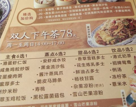 去吃了下午茶,环境不错,人也不多,不像饭点人多要排队,下午茶套餐还是比较推荐的,实惠也够量,完全可以当晚饭吃,推荐凤爪,够酥、炸发的也好,味道不错,杨枝甘露量大口感好,牛肉炒饭稍微有点油,奶茶香,...去吃了下午茶,环境不错,人也不多,不像饭点人多要排队,下午茶套餐还是比较推荐的,实惠也够量,完全可以当晚饭吃,推荐凤爪,够酥、炸发的也好,味道不错,杨枝甘露量大口感好,牛肉炒饭稍微有点油,奶茶香,性价比蛮高的,还会再去。