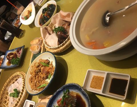 整个环境很有港式风格,包含壅挤的座位也非常港式。公司聚餐去了10个人,有小包厢能使用,但是包厢里居然没有空调,又闷又热,大冬天的居然都吃到微冒汗了。 点的10人套餐,说是刚上的所以好几样东西都没有,可能备料不齐全吧,帮我们换了其他东西,味道还是都不错的,份量也够,10个人吃的饱饱的没问题。 因为套餐里有附酒,服务员从柜子里拿了几个酒杯,不知道是不是平常用的少,酒杯上都脏脏的不太干净,建议还是先好好清洁再拿给客人!