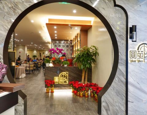 徐汇日月光开业后我还没有去过,这次年朋友年末聚会大家就挑选了这里;作为徐汇新地标的日月光确实让人欣喜,里面又好多美食聚集,让人宛若穿梭在美食丛林。圆苑是我们此次聚餐的首选,本帮菜与粤菜经典呈现总让...徐汇日月光开业后我还没有去过,这次年朋友年末聚会大家就挑选了这里;作为徐汇新地标的日月光确实让人欣喜,里面又好多美食聚集,让人宛若穿梭在美食丛林。圆苑是我们此次聚餐的首选,本帮菜与粤菜经典呈现总让人念念不忘的! 我们预定的包房在餐厅最里面,空调好的不得了宛如初夏,宽敞大气的包房搭配上一壶普洱也是蛮有意境,等待每位老友逐一到来品此茶也再适合不过了! 精致冷菜先逐一上桌,手撕咸鸡皮色诱人鲜嫩美味;糖醋小排、本帮爆鱼,有异曲同工之妙都是酱汁浓郁收汁完美味道好;圆苑拌鲁菜,青瓜海蜇皮口感爽口怡人;白切酱油肉,酱油做的相当地道,透明的肥肉油脂已经控出口感肥而不腻,搭配的是酱鸭滋味也是非常棒! 圆苑醉膏蟹,超大肥美膏又红的醉蟹绝对惊艳餐桌,每个人视线都注意着它,滋味也是想象中的一样,让人很难忘的美味! 脆皮小乳鸭,店家的特色菜,冷菜热做所以上桌马上吃口感是最棒的,皮脆肉嫩非常完美!冰沙红酒鹅肝,冰沙垫底玻璃罩覆盖就是要保持住这份鲜嫩,入口既化清甜有回味是最好的表达,口感很惊艳!海鲜拼盘,如同日料刺身一样装盘端上来气势不凡,素鲍鱼、鲍鱼、海螺、大虾、海蜇丝每样都的有滋有味的美味! 热菜第一个上桌的就是招牌红烧肉,这个是多么让人想念的滋味,当年是他家第一个把红烧肉做到极致的人家,想念的滋味继续可以延续! 金牌煮干丝、热呛虎尾,都是经典本帮菜特色,也都做的地道美味;清蒸鲥鱼,鲥鱼鱼肉不仅鲜美而且用调料蒸的也恰到好处味道非常赞! 文火雪花牛肋肉,酱色深浓汁水收好,营养又美味的雪花肋肉炖的软糯入味;脆皮腐乳肉包饼,也是店家特色之一了,外脆里嫩的腐乳肉口感本身都已经非常不错,搭配黄瓜、蜜瓜丝等用包饼一起食用口感绝对妙不可言! 鸡头米炒河虾仁,这样搭配的菜肴我第一次尝到,原来鸡头米搭配河虾人也是不违和的呢,满口的清新与鲜美很让人喜欢!虾头酱炒荷花耳,虾头酱的鲜香之极搭配清爽又脆口的荷花耳也是再搭不过了! 葱烤萝卜,整个长萝卜里面挖空塞肉的,彼此吸收对方的精华味道很不错!园苑特色土鸡汤,可真谓特色了,土鸡汤本身就是那么营养又鲜美的,但是一朵莲花上去在汤中盛开还是让人意想不到的景象,美丽又美味印象深刻! 酒酿圆子、火腿粢饭糕,组合为一组点心搭配精致可爱,酒酿小圆子还是芝麻馅的呢!粢饭糕带着火腿丝自然是咸鲜美味有香脆好吃!冰糕,甜品做为晚餐的收尾很满足!
