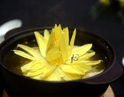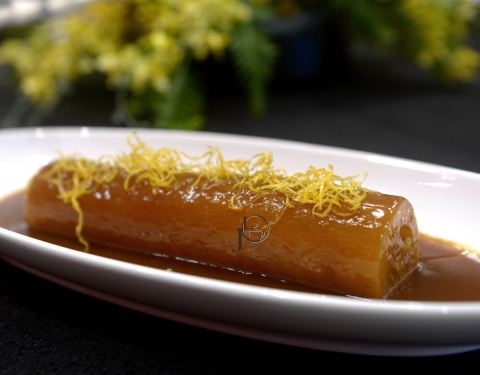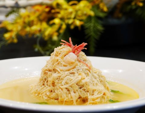 徐汇日月光开业后我还没有去过,这次年朋友年末聚会大家就挑选了这里;作为徐汇新地标的日月光确实让人欣喜,里面又好多美食聚集,让人宛若穿梭在美食丛林。圆苑是我们此次聚餐的首选,本帮菜与粤菜经典呈现总让人念念不忘的! 我们预定的包房在餐厅最里面,空调好的不得了宛如初夏,宽敞大气的包房搭配上一壶普洱也是蛮有意境,等待每位老友逐一到来品此茶也再适合不过了! 精致冷菜先逐一上桌,手撕咸鸡皮色诱人鲜嫩美味;糖醋小排、本帮爆鱼,有异曲同工之妙都是酱汁浓郁收汁完美味道好;圆苑拌鲁菜,青瓜海蜇皮口感爽口怡人;白切酱油肉,酱油做的相当地道,透明的肥肉油脂已经控出口感肥而不腻,搭配的是酱鸭滋味也是非常棒! 圆苑醉膏蟹,超大肥美膏又红的醉蟹绝对惊艳餐桌,每个人视线都注意着它,滋味也是想象中的一样,让人很难忘的美味! 脆皮小乳鸭,店家的特色菜,冷菜热做所以上桌马上吃口感是最棒的,皮脆肉嫩非常完美!冰沙红酒鹅肝,冰沙垫底玻璃罩覆盖就是要保持住这份鲜嫩,入口既化清甜有回味是最好的表达,口感很惊艳!海鲜拼盘,如同日料刺身一样装盘端上来气势不凡,素鲍鱼、鲍鱼、海螺、大虾、海蜇丝每样都的有滋有味的美味! 热菜第一个上桌的就是招牌红烧肉,这个是多么让人想念的滋味,当年是他家第一个把红烧肉做到极致的人家,想念的滋味继续可以延续! 金牌煮干丝、热呛虎尾,都是经典本帮菜特色,也都做的地道美味;清蒸鲥鱼,鲥鱼鱼肉不仅鲜美而且用调料蒸的也恰到好处味道非常赞! 文火雪花牛肋肉,酱色深浓汁水收好,营养又美味的雪花肋肉炖的软糯入味;脆皮腐乳肉包饼,也是店家特色之一了,外脆里嫩的腐乳肉口感本身都已经非常不错,搭配黄瓜、蜜瓜丝等用包饼一起食用口感绝对妙不可言! 鸡头米炒河虾仁,这样搭配的菜肴我第一次尝到,原来鸡头米搭配河虾人也是不违和的呢,满口的清新与鲜美很让人喜欢!虾头酱炒荷花耳,虾头酱的鲜香之极搭配清爽又脆口的荷花耳也是再搭不过了! 葱烤萝卜,整个长萝卜里面挖空塞肉的,彼此吸收对方的精华味道很不错!园苑特色土鸡汤,可真谓特色了,土鸡汤本身就是那么营养又鲜美的,但是一朵莲花上去在汤中盛开还是让人意想不到的景象,美丽又美味印象深刻! 酒酿圆子、火腿粢饭糕,组合为一组点心搭配精致可爱,酒酿小圆子还是芝麻馅的呢!粢饭糕带着火腿丝自然是咸鲜美味有香脆好吃!冰糕,甜品做为晚餐的收尾很满足!