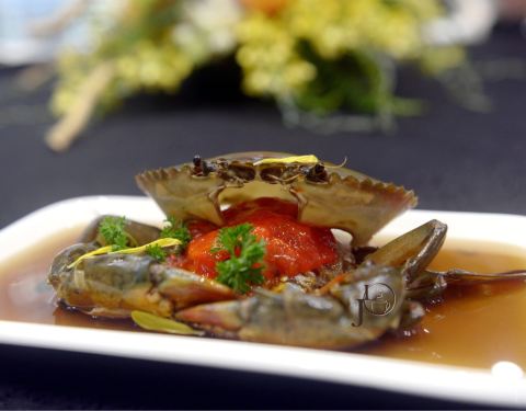 一只圆苑醉膏蟹弹眼落睛惊艳全场,在这里我还发现了二道赛西式的冷菜冰沙红酒鹅肝和南瓜栗子色拉都好...