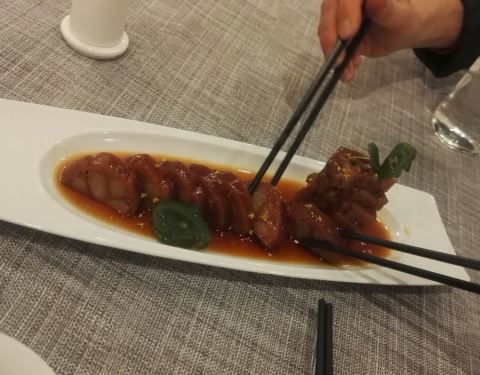 圆苑据说是上海本帮菜里面数一数二的店,到了上海肯定要去尝尝。 店面比较大,环境不错,看着很干净。服务员个个训练有素,彬彬有礼。菜品种类比较多,味道很好。上菜速度很快。 招牌的圆苑红烧肉,味道一级棒。肥肉有胶质感,瘦肉不柴。也不是很甜。不错。 糖醋小排很正宗。味道好。 文火雪花牛肉,盘饰很好,点上火焰,很有气氛。牛肉味道也不错。 蟹粉小笼包,这个有点腥,吃不惯。 鲑鱼馄饨不错。汤头很清淡,北方人更喜欢口重的。 总体感觉很好。适合商务宴请。