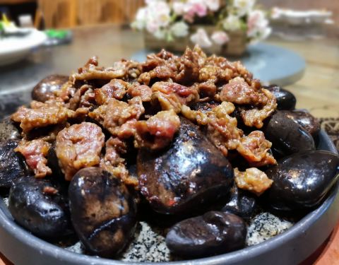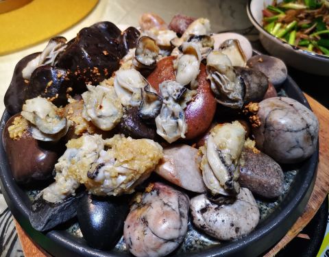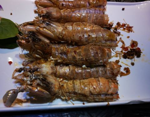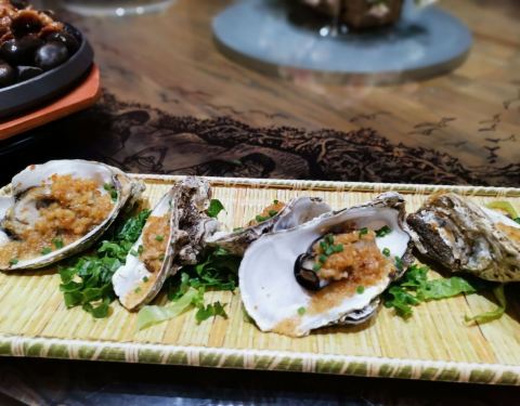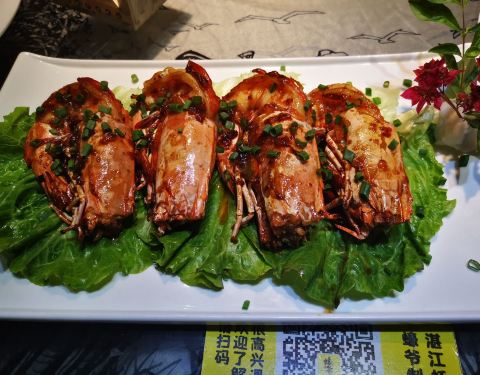 湛江在地级市中海岸线最长,生蚝产量应该占到全国的一半以上。现在全国各地都遍布“湛江生蚝”,跟“新疆羊肉串”知名度差不多了。湛江生蚝产量大,个头大,新鲜,吃蚝在湛江有好几家,还是觉得蠔爷比较正宗。最好的蚝适合吃原味,蒜泥烤蚝烤到七成熟,那味道是最鲜美的,点了进口生蚝和烧蚝,两种风味都喜欢,濑尿虾一般,石炙牛肉,形式大于内容,没有什么惊艳,其它都是配角,就是喜欢生蚝确实有特色。