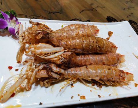 其它海鲜还是不错的,小青龙清蒸肉质弹性十足,大肠煲很干净,不油腻,很清爽,家里做不了