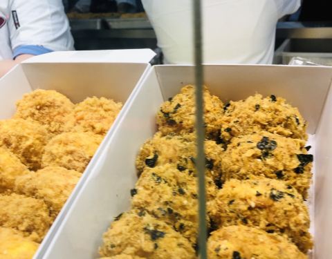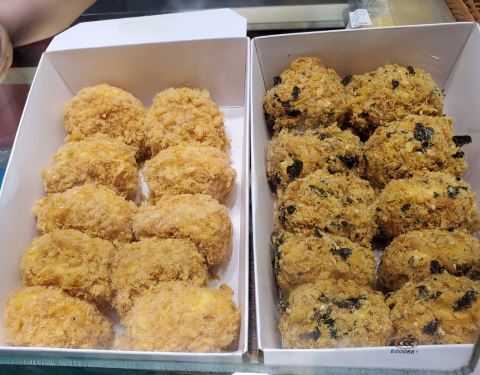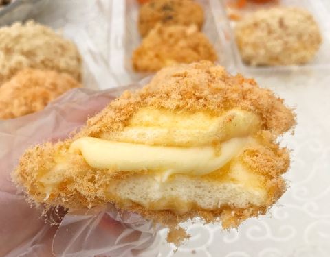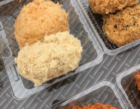 今天晚上路过这边没排几个人,决定去试试,排队的是实在不想去凑热闹的,两个海苔肉松,两个蟹黄肉松,味道真的不错,肉松很多,蛋糕很软,蛋黄酱也不腻