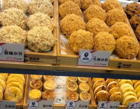 我得赶紧把这篇点评写了,因为说不定不久它就关门了,我的点评也就无处安放了。 哎!说到这儿我就想骂我自己,为什么为什么如此的马虎。 明明晓得这条街上开了两家鲍师傅,老店是假的,新开业的是真的。 并且我是连地址都晓得的哟,可惜我还是迷迷糊糊的走错了地儿。 也怪当时时间太匆忙,跟没多想,看见没人排队也只是觉得是我去早了,所以还没客人。 当我发现自己是买的假的时候,我的肠子都悔青了,欲哭无泪呀。 店里有一个小贝套餐,就是19元可以把店里的小贝一样一个买走。 我喜欢这种安排,那样就可以一次性的将所以口味都尝一遍啊,多人性化的。 第一次吃真正鲍师傅是同事买的,在网上找到北京代购。运费比糕点的费用贵多了。 虽然挤得有些变形了,但是味道是真的好,吃得我特开心特满足。 这家假的鲍师傅,欺骗了我。让我气了自己很久,我也就不详细写点评了。 写一写我的吃后感吧。 优点是小贝中间的沙拉酱包得特别多特别厚实,咬一口就会爆浆的那种,也不会腻。 缺点是肉松品质一般,肉肉的那种质感差了些,并且量也没有正宗鲍师傅小贝丰盈厚实,总体来说质感和口感都还是不同,有差距。 哎。不写了。越写越难受。我就说嘛,怎么吃起来没那么好吃了,我还怪我自己口味变了。原来根本就不是一家。山寨货真可恨。 可是店员的态度还是蛮好的。所以我不能太偏激,给三星印象分吧,虽然你欺骗了我。