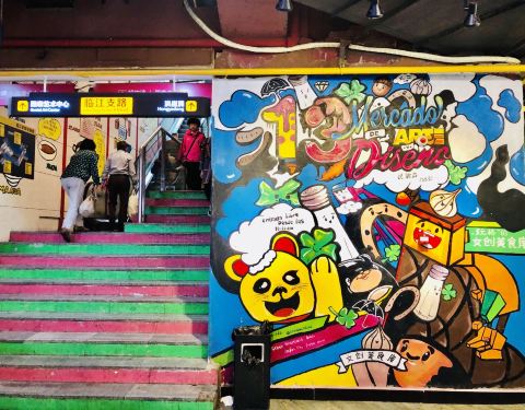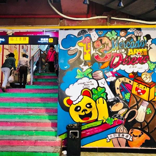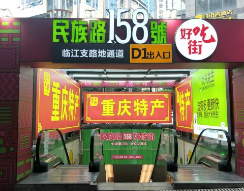 地下文创美食广场•民族路158号好吃街 晚上步行去解放碑的路上,首先经过的就是这个民族路158号好吃街 其实是被他的墙上壁画吸引了眼球,画的很卡哇伊但也很重庆哦,总体来说还是被好奇心驱赶下,走到了地下通道...