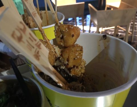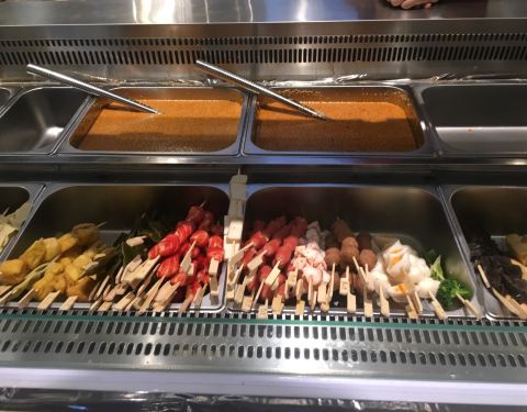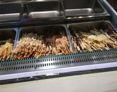 力旺广场美食城里面的一家店,快两年没吃这家串串香了,这次来发现味道比原先好了很多。冷锅串串,选好了串浇一下辣椒油、调料就算是完事了。价格也比较贵,最便宜的是2元一串,荤的基本上要4元一串打底,吃几个串怎么的也要三四十块。