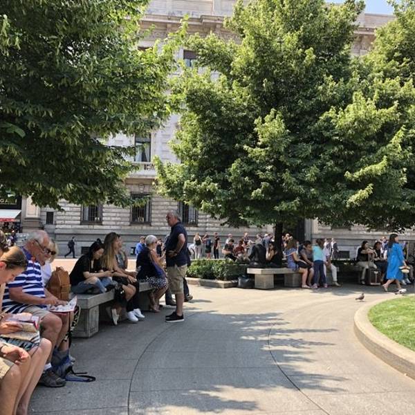 走廊两边的建筑是综合商场,走到头出去就是个小后花园。很多人坐一圈休息…就在米兰大教堂广场的边上,里面差不多都是奢侈品店铺。走廊两边的建筑是综合商场,走到头出去就是个小后花园。很多人坐一圈休息…