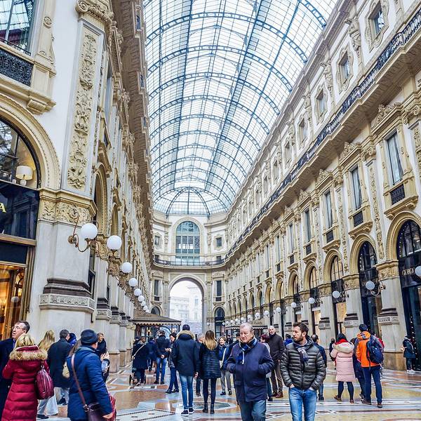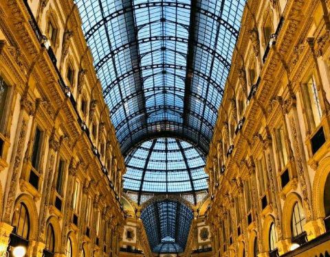 PS:长廊顶部同样面向大众开放,可以等到日落时分登顶,感受米兰夜景就在米兰大教堂一侧,繁华的十字型室内商街,汇集着各种奢侈大牌。