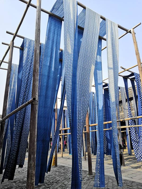 好像是某个影视片场景里有这个地方,一个村镇里总有这样一个地方,卖布的,染坊,俺们看见的染坊后院有这样的成品吧,蓝色的花布一条一条晾挂在场院里,淡季游客不多,随便拍随便凹造型,前厅好像还有相关的周边...