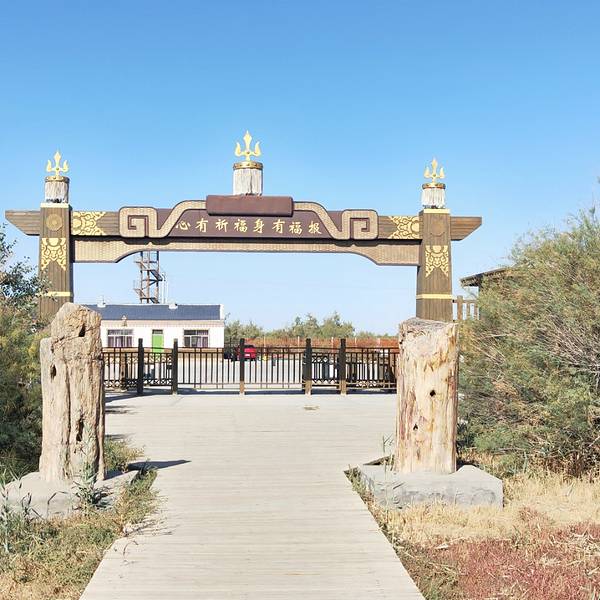 神树位于额济纳北面25公里处,树身高27米,直径约4米,树龄巳达880年,堪称额济纳胡杨树之王。按照当地习俗,神树被赋于神秘的色彩,成了当地老百姓祭祀苍天神灵的附载物。要参观神树,须给门口坐着的老太十元钱...