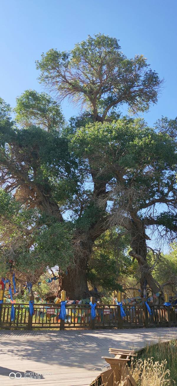 神树真的是挺神的!跟大需要五个人白能给它抱住,听说当时胡杨林大火,周围所有的树都烧没了!就它还在哪里没着,是不是有点神。