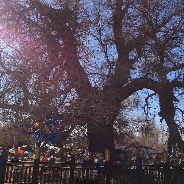 师傅带我们去了神树,神树是胡杨树,有几千年的历史了,她的周边生长出了很多的小树,也都已经很大了...策克口岸结束后,师傅带我们去了神树,神树是胡杨树,有几千年的历史了,她的周边生长出了很多的小树,也都已经很大了,我们这个时候来看神树,叶子是完全落光了的,在网上看了下她有图片的样子,很大,很美,10...策克口岸结束后,师傅带我们去了神树,神树是胡杨树,有几千年的历史了,她的周边生长出了很多的小树,也都已经很大了,我们这个时候来看神树,叶子是完全落光了的,在网上看了下她有图片的样子,很大,很美,10元每人的门片,听师傅说是私人的景区,两个老太在家里,说他们是一个很有名的人的后代,他们现在的后代也都很厉害。途中偶遇黑枸杞树途中偶遇 展开