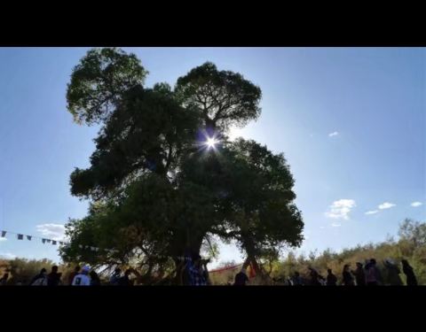 神树,树龄达880年。神树高23米,主干直径2.07米,需6人手拉手才能围住。在这棵千年“神树”周围30米内,又分生长出5棵粗壮的胡杨树,牧人们把它们叫做“母子树”,非常壮观。神树长在一个老奶奶家的承包林里,她...