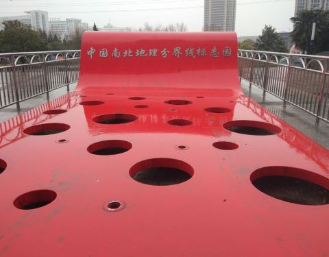 众所周知,横贯中国的南北地理分界线为秦岭淮河,淮安作为一个节点,应该是很希望能借此凸显自己吸引关注,于是新建了南北地理分界线标志园,2008年开工,次年建成,作为主体标志的“红蓝桥”横跨古淮河上。桥和...