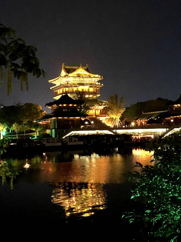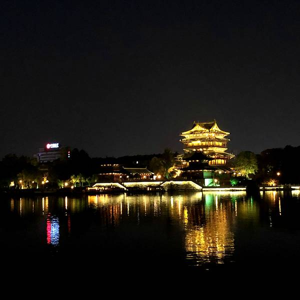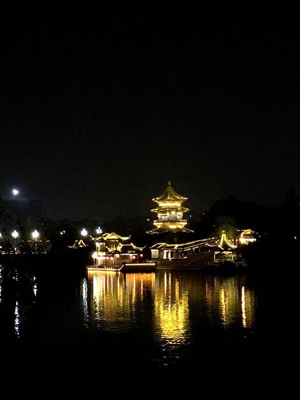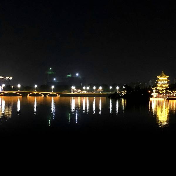听说这里的茶餐不错,就找了一家坐下,确实很赞。晚饭后自自然是夜游古城了。老街入口处是一座大牌坊,它的正面写着“老街”两个大字,另一面写着“大道无边”四字,当时没有细看,不知都是谁的墨宝。进入老街可以看到一律是青砖黛瓦的建筑,似乎是一条新“老街”。不知在历史上这里是不是曾经有过一条老街?颇为疑惑。老街不长,大概就几百米,但是建筑颇有特色,街道也整齐干净,再加上一些特色店铺和商品,还是有些能吸引眼球的地方。走出老街就是一片很大的水面,我们绕了一大圈,这里空气很不错,就是灯光有些暗淡。 展开