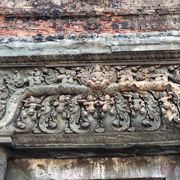 ...建筑群的色调和女王宫一样,红砖灰泥,还有吴哥早期的雕刻,很细腻,门柱上还有精心篆刻的古印度梵文罗洛士群中第二重要的遗址,六座砖红佛塔,男性在前,家人在后,每组佛塔前有一只神牛守护,整个建筑群的色调和女王宫一样,红砖灰泥,还有吴哥早期的雕刻,很细腻,门柱上还有精心篆刻的古印度梵文。塔门是封死...罗洛士群中第二重要的遗址,六座砖红佛塔,男性在前,家人在后,每组佛塔前有一只神牛守护,整个建筑群的色调和女王宫一样,红砖灰泥,还有吴哥早期的雕刻,很细腻,门柱上还有精心篆刻的古印度梵文。塔门是封死的,里面大概是有些遗物。 展开