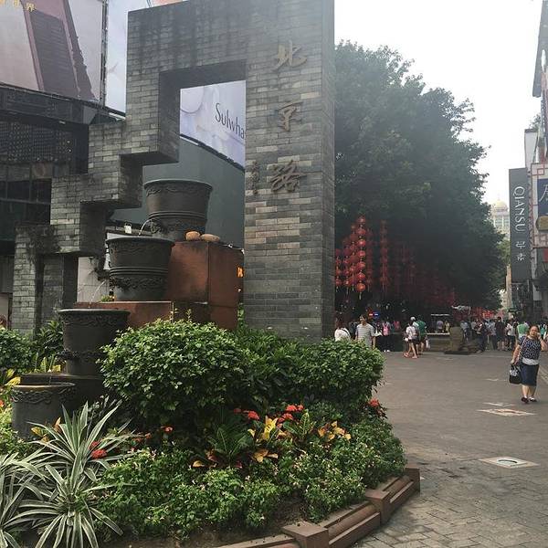 般),路的两边,左边是一些品牌商店,右边是新华书店以及青宫,在青宫看电影还是不错的。一直直走就到了看到马路,你就把北京路走完了。这里有给游人嬉戏的喷泉,定时会喷水,具体时间我也不清楚,而左边在森马左边有一个小门,那也是美食老字号,它家牛杂很好吃。森马右面有卖月饼、广式手信的老字号:莲香楼,这里门店不大,可是还是挺正宗的。其实北京路还有一小段,就是过了马路对面,新大新旁边,现在被打造为老字号一条街,上边还有