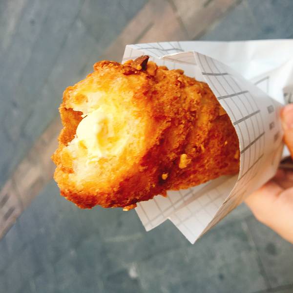 店名如上,是一种法国奶酪,具体的名字不记得了,外面是炸的脆脆的,里面是奶酪,还有冰淇淋,有很多种口味,很好吃,是广州的网红店了,很多人排队,等了一会才吃到的。