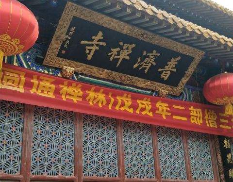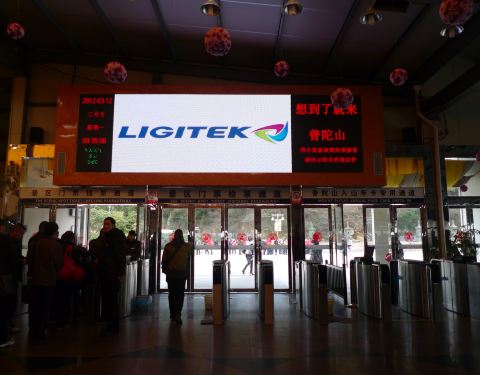普陀山山门在码头入口处,是普陀山岛上的地标之一。正面书有普陀圣境的匾额。后面书观音道场。