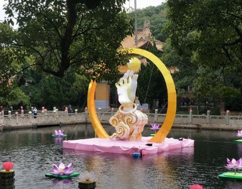 普陀山依山傍水,山海兼具,非常有佛国的神秘色彩正所谓,海上有仙山,山在虚无缥缈间。普陀山依山傍水,山海兼具,非常有佛国的神秘色彩。从普陀山客运码头出来后右手边就是普陀山大大的山门,上面写有观音道场的匾额。