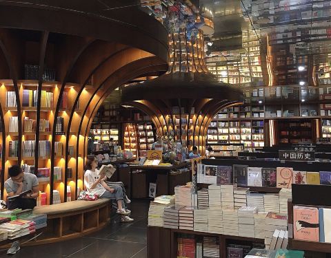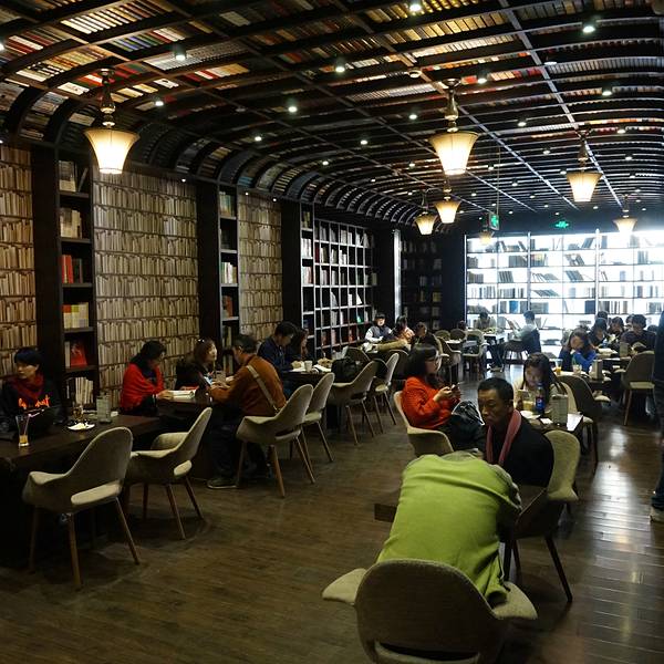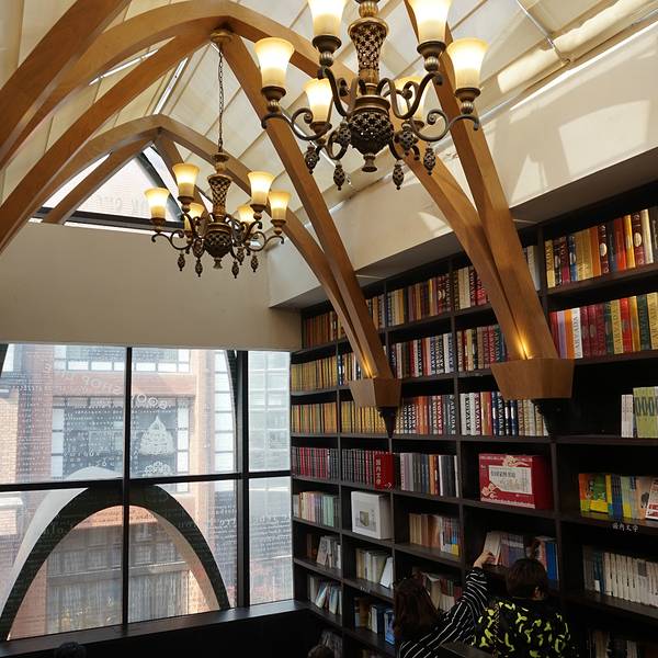 走进店里,马上就可以体会“钟书”的含义,两层楼面,上上下下、四面八方都是书,连门厅的地下(铺着玻璃)、楼梯一侧等等,都放着书,层层叠叠,密密麻麻。书店自然要营造满目皆书的视觉效果,但这里所有的大空间都被分隔成一间间带有不同主题的小书房,显得非常精致,体贴。而且每个房间设计都很独到,富有艺术气息,令人产生在大英图书馆阅读的错觉。讨论室、小画廊、写作室、咖啡室等休闲区都被安排得周到而合适,很有节奏感。独特的建筑装修风格,安静的文化氛围,它被读者称为“很美的书店”,看来是当之无愧的。