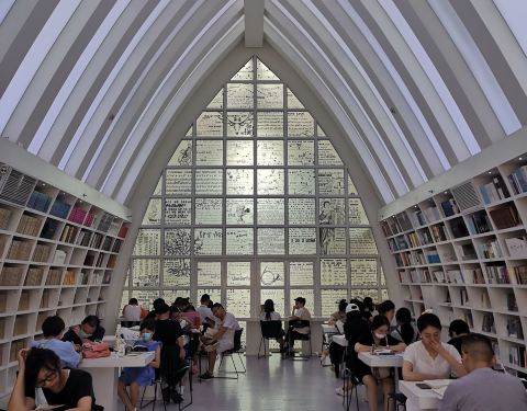 钟书阁是位于九龙坡杨家坪正街的一家书店,整个大厅四周被“山形台阶”层层环绕,层峦叠嶂的空间感,...钟书阁是位于九龙坡杨家坪正街的一家书店,整个大厅四周被“山形台阶”层层环绕,层峦叠嶂的空间感,天花板也是一面镜子,倒映出一个镜像空间。