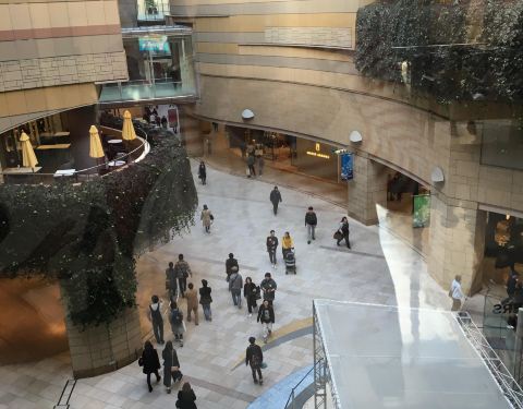 店超级多,可以逛很久,也有很多餐饮店这边就是一个大型的购物中心,设计很有特点,墙体上爬满了绿化,还有一个空中花园,很漂亮。店超级多,可以逛很久,也有很多餐饮店。