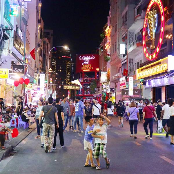 范五老街是胡志明市里最为热闹的地方,该街集中许多旅馆、餐厅、旅行社、咖啡馆,酒吧以及商店,这里很热闹