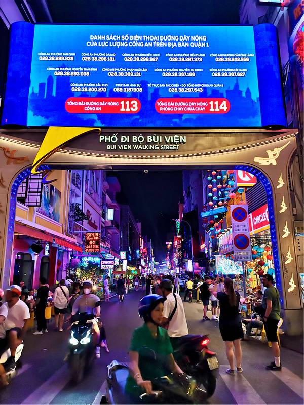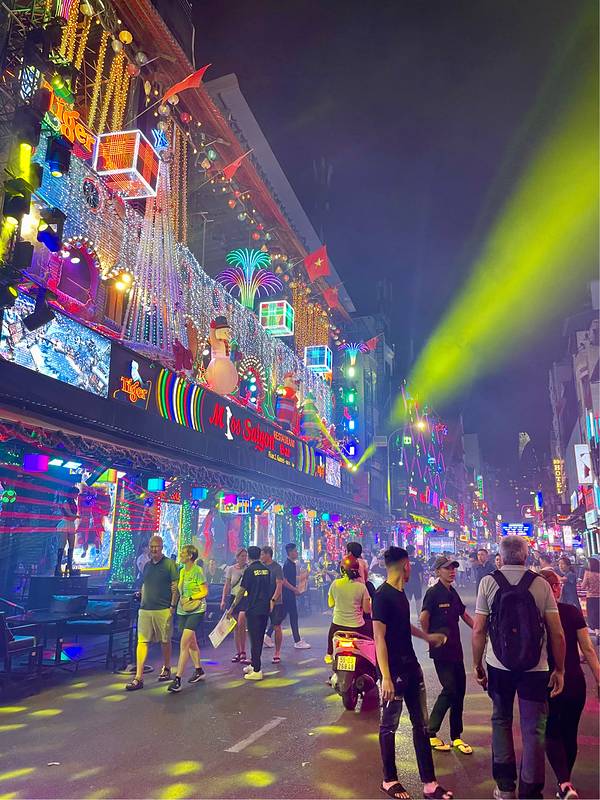 「范五老」是越南一名將軍的名字,范五老街的名字就是由他的名字命名的,并不是字面意思。如果不是提前了解,我肯定以为是后者,以为是一条老街。白天的范五...范五老街,大型party现场,越夜越美丽!越夜越精彩!