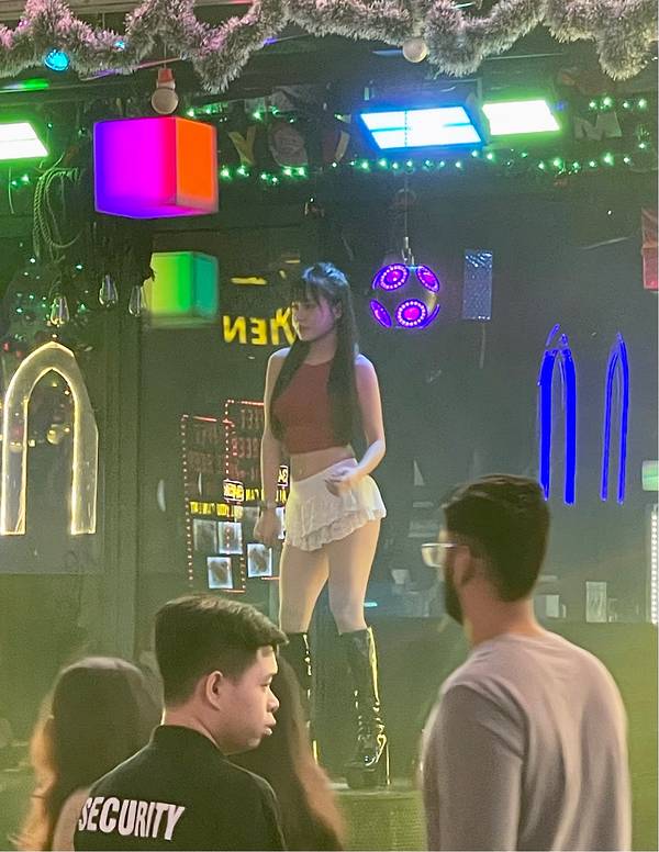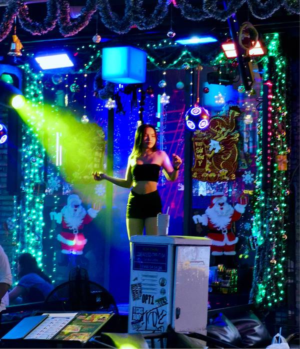 「范五老」是越南一名將軍的名字,范五老街的名字就是由他的名字命名的,并不是字面意思。如果不是提前了解,我肯定以为是后者,以为是一条老街。白天的范五老街跟普通的街市没有什么两样,聚集小吃,咖啡馆可供休息。但晚上才是他的主场。据说会一直持续热闹到凌晨3点。范五老街也是酒吧一条街,一到晚上整条街都是人,被挤的水泄不通,两排的酒吧更是灯火通明,音乐炸耳。如果你是一个吃货,会发现很多小吃,都可以试试,但这里的价格比普通街市贵一点。跟着人群走,一整条街很快会走到头,但是你肯定会来回走好几次,不要问我为什么,嘿嘿。酒吧门口有很多服务员邀请你去他们店里消费,还有各种美女,值得一说的是,很多酒吧的装修真的很有特色,很吸睛。你可以挑一家自己喜欢的体验,酒水价格整条街都差不多。在越南,还有一大特色就是坐在路边,哪里的店铺都可以坐在路边。在走走逛逛的时候,看到有一家楼上有个小哥哥在跑步健身,马上拍摄记录下来,这一刻简直对比太强烈了,外面音乐声音特别响,也很动感,而他在悠然自得的跑步。传说中的反差萌。范五老街入口处有取款机,如果走累了也可以去按摩店按按脚放松一下。