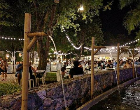 Cicada Market是华欣热门的周末创意夜市,只在每周五、周六和周日营业。这里有包括学生作品在内的手工制品、家居装饰、服装、二手货等种类丰富的原创商品,还有设计师摆摊贩卖自己手作,大部分都很有创意与艺术气息。每一个摊位都有一个白色的伞棚,搭配树上黄色的暖光灯,越晚越有气氛。除了原创艺术品和创意展演外,这里也不乏特色小吃烧烤,边逛充满文艺气息的市集,边吃着当地特色的小吃,是感受这个文艺市集的好姿势。此外,在露天剧场内,音乐剧、魔术等形式的表演还会在这里不定期上映。
