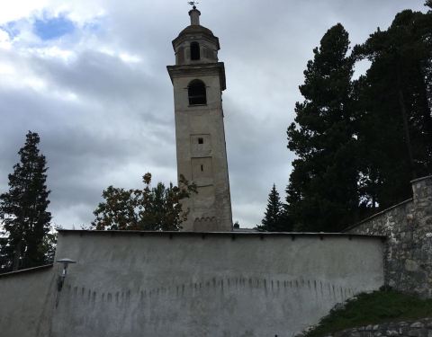 比萨斜塔的倾斜度为4度,圣莫里茨斜塔的倾斜度是5.5度,但因为比比萨斜塔矮很多,圣莫里茨斜塔的震撼力就逊色不少。 作为圣莫里茨的地标,斜塔几百年来注视着小城的变迁和苍桑,眺望着街区的人来人往、山谷的日出日落、湖面的凝冰化冻~ 观赏斜塔,一定要找一个好的视角和参照物。因为塔尖向北倾斜,在塔正面(南面)的街道上,就蛮难体验到塔的倾斜,转到侧面~美景才在眼前。