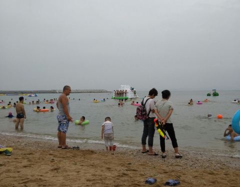 广场里面的海水浴场免费,可以自由游玩。海水里很多垃圾和海菜,海水不是很清澈广场里面的海水浴场免费,可以自由游玩。沙滩全是小石子碎贝壳,很扎脚。海水里很多垃圾和海菜,海水不是很清澈。周围有大排档和小吃摊,总之可以来看看,不要抱太大希望。