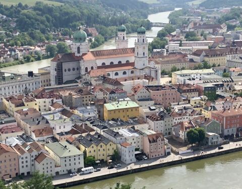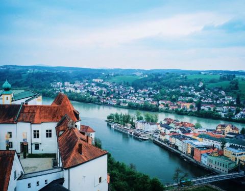 帕绍虽然是个小镇,但它的地理位置却十分的特殊,德国境内的三条河流,多瑙河,莱茵河,以及伊尔茨河在这里交汇,站在这里的观景台上可以看到这壮阔的自然美景,真的相当的不错,值得向大家推荐。