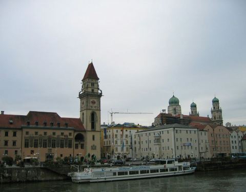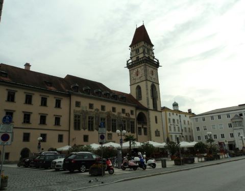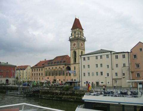 帕绍老市政厅是面朝多瑙河的一栋有着哥特式钟楼的房子,外立面上描绘着帕绍的历史人物,而钟楼会在每天的几个整点敲响,钟声回荡在整个古城,特别的有历史感。