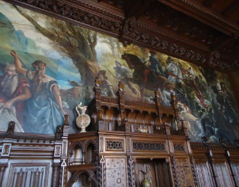 城堡的外观很漂亮,内部装饰也不错。一楼的长廊有彩绘,卧室和起居室的屋顶和家具都是实木的