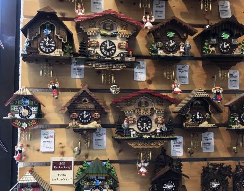 德国黑森林除了黑森林蛋糕外就是布谷鸟钟最出名了,在黑森林小镇特里贝格每家店几乎都有布谷鸟钟出售...