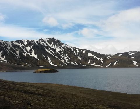 兰德曼娜劳卡以山体颜色多彩著称,适合户外爱好者,有小木屋,帐篷营地,数量不多,得提前预订,抢手。天气变化快,忽晴忽雨,雨雾较多,有些地方常年积雪。前往营地的最后段路是沙石路,途中有一美丽湖泊。而营地之后就得徒步而行了。