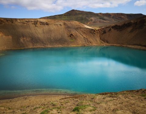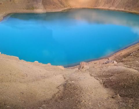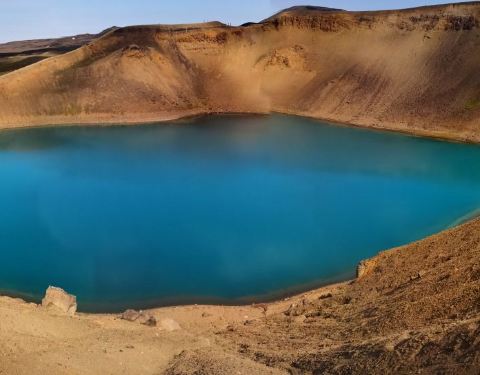 克拉夫拉火山是冰岛是一座冰岛暂时休眠的火山,最后一次喷发是在1984年,这里一片非常的荒芜,基本都是黄色,火山口有一汪蓝色的火山湖,非常的漂亮,这里也是冰岛著名的地热发电厂,地热资源非常的丰富。