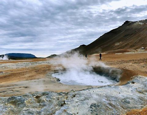 这里一片非常的荒芜,基本都是黄色,火山口有一汪蓝色的火山湖,非常的漂亮,这里也是冰岛著名的地热发电厂