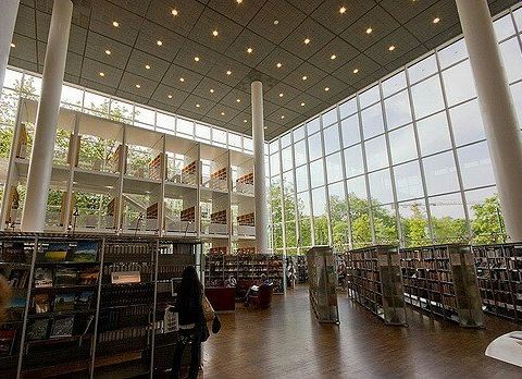 很喜欢这里超大幅的玻璃幕墙,让室内光线非常充足,而且向外看就是绿油油的树林。自助借书和还书的机器也很不错,很多读者都是自助借阅的。