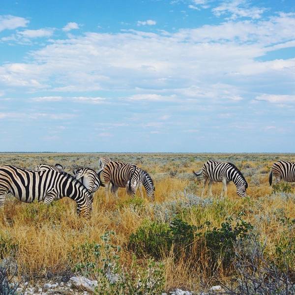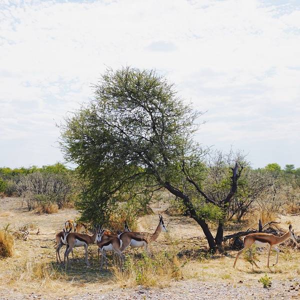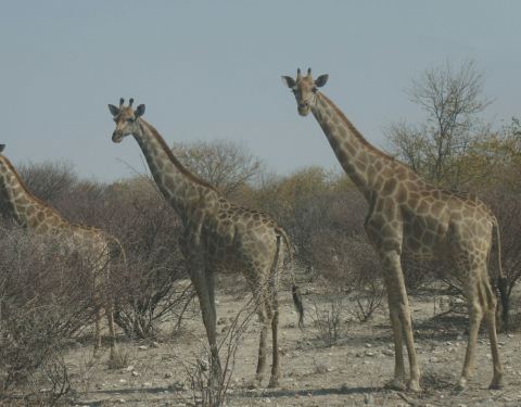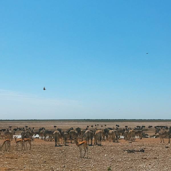 埃托沙天然野生动物园,其实是一座非常广袤的自然公园。这里的动物常聚集到水塘边喝水,见到最多的是长颈鹿,可能是他脖子长的原因,使他容易在矮的灌木丛中暴露,还可以见到大象,林洋,斑马,角马和狐狸等。不过这里的动物比起马赛马拉草原上动物大迁徙还是少了许多,可能是因为这里实在太干旱的缘故。