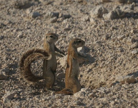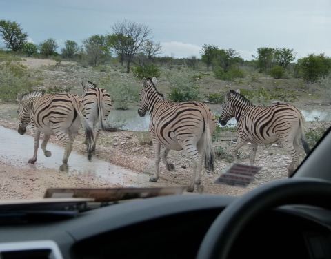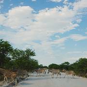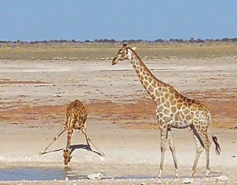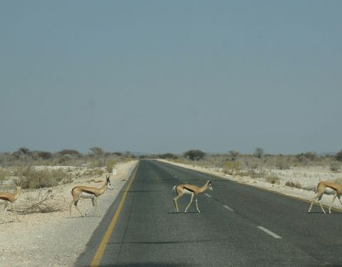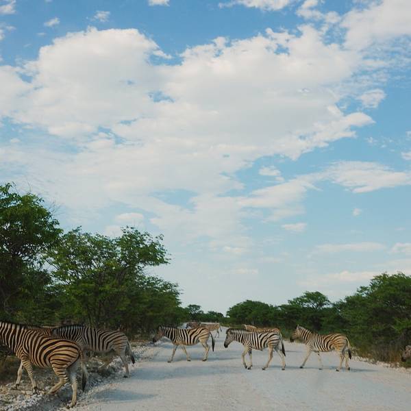 埃托沙天然野生动物园就是在公路的两旁,沿着公路有一条水源地,动物们经常会横跨公路去喝水。在这里有许多的长颈鹿和大象,同时还有难得一见的赤狐。这里绝对是一处人类与野生动物和平共处的绝佳之地。