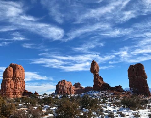直到今天,公园中的新拱门仍在持续制造;而老拱门也在逐渐走向毁灭…… 这里的岩石经过上亿年的侵蚀,有的状如拱、有的尖似塔、还有的看似孤丘、更有成片散布变幻无穷的怪石嶙峋,真是千奇百怪、姿态万千!