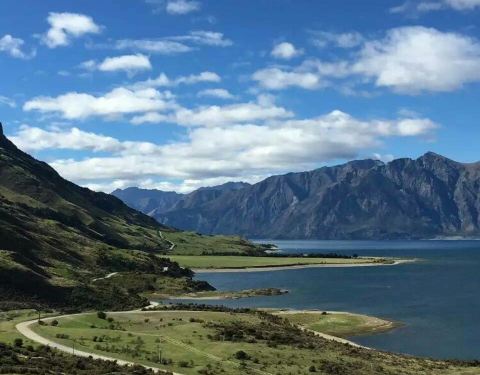毛沃和湖是新西兰南岛离皇后镇大约一个多小时车程的景区,瓦纳卡湖以北。从皇后镇到瓦纳卡镇的路上风景都非常漂亮。清晰的大湖伴着阿尔卑斯山脉,加上蓝天白云,新西兰美景近在眼前。